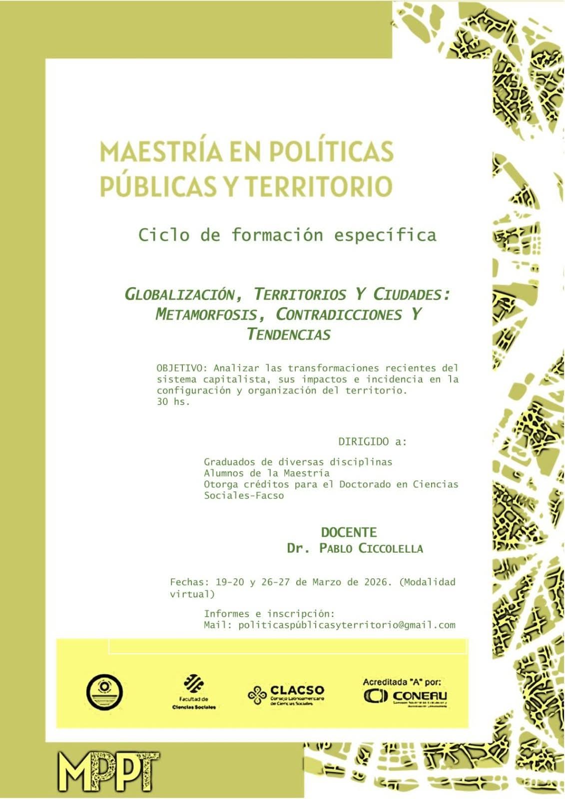 Curso de posgrado: “Globalización, territorios y ciudades: metamorfosis, contradicciones y tendencias”.