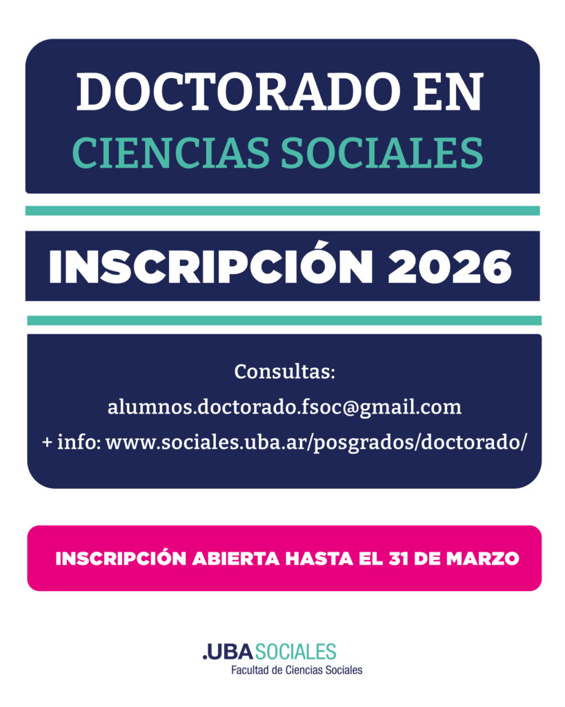 Se encuentra abierta la inscripción 2026 al Doctorado en Ciencias Sociales de la Facultad de Ciencias Sociales (UBA)