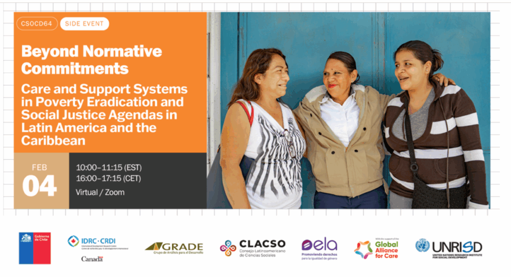 • Organizan: UNRISD, Gobierno de Chile, IDRC, GRADE, CLACSO y ELA, con la colaboración de la Alianza Global por los Cuidados
