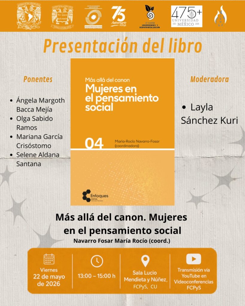 📍 Lugar: Sala Lucio Mendieta y Núñez, FCPyS, Ciudad Universitaria (CU).