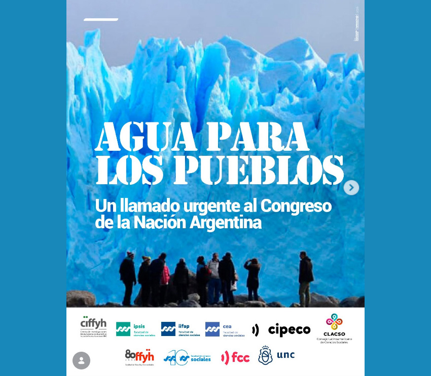 Los Centros de la Facultad de Filosofía y Humanidades, la Facultad de Ciencias Sociales y la Facultad de Ciencias de la Comunicación de la Universidad Nacional de Córdoba que integran el Consejo Latinoamericano de Ciencias Sociales realizaron un llamado urgente al Congreso de la Nación de Argentina para rechazar las modificaciones a la Ley de Glaciares (26.639) y garantizar la protección de los ambientes glaciares y periglaciares como bienes comunes.