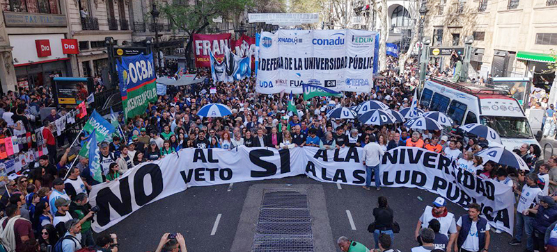 CLACSO acompaña las reivindicaciones de mayor presupuesto e inversión en educación y salud públicas, denunciando las políticas ultraliberales y de extrema derecha que le quitan a los que menos tienen y más necesitan para beneficio de una oligarquía financiera beneficiada por gobernantes que se sostienen en medidas antidemocráticas y crueles y por medio de las fuerzas represivas, como viene ocurriendo en la Argentina de Milei.