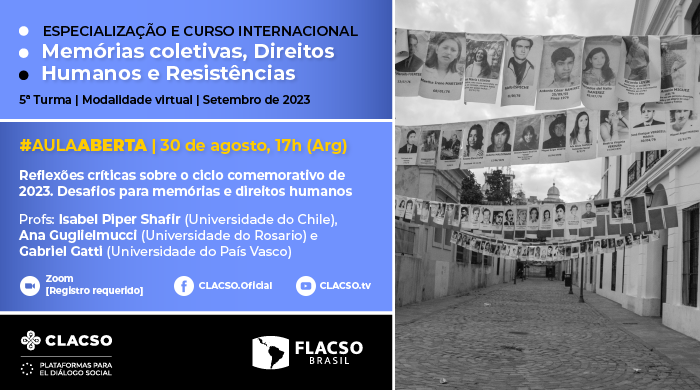 A Especialização em Memórias coletivas, Direitos Humanos e Resistências convida para a aula aberta: Reflexões críticas sobre o ciclo comemorativo de 2023. Desafios para memórias e direitos humanos