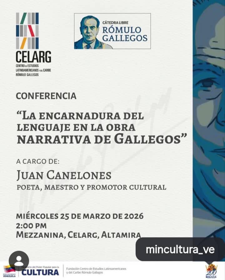 La Cátedra Libre Rómulo Gallegos es un espacio académico y de investigación creado en el Centro de Estudios Latinoamericanos y del Caribe Rómulo Gallegos (CELARG) en Caracas, inaugurado en febrero de 2025. Se dedica a estudiar, difundir y valorar la vida, obra literaria, política y labor docente del escritor. Es esta ocasión tenemos como invitado […]