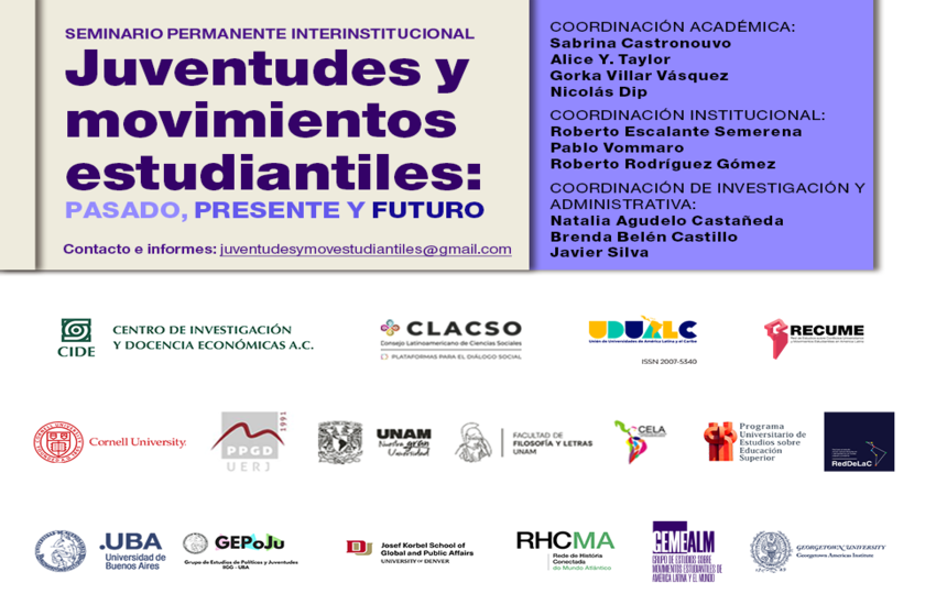 📅 Primer semestre 2026💻 Modalidad: Virtual🎓 Actividad académica con constancia de participación Se encuentra abierta la inscripción al Seminario Permanente Interinstitucional “Juventudes y movimientos estudiantiles: pasado, presente y futuro”, un espacio académico de intercambio y reflexión dirigido a estudiantes, investigadoras/es y docentes interesados en el estudio de los activismos juveniles y estudiantiles en América Latina […]
