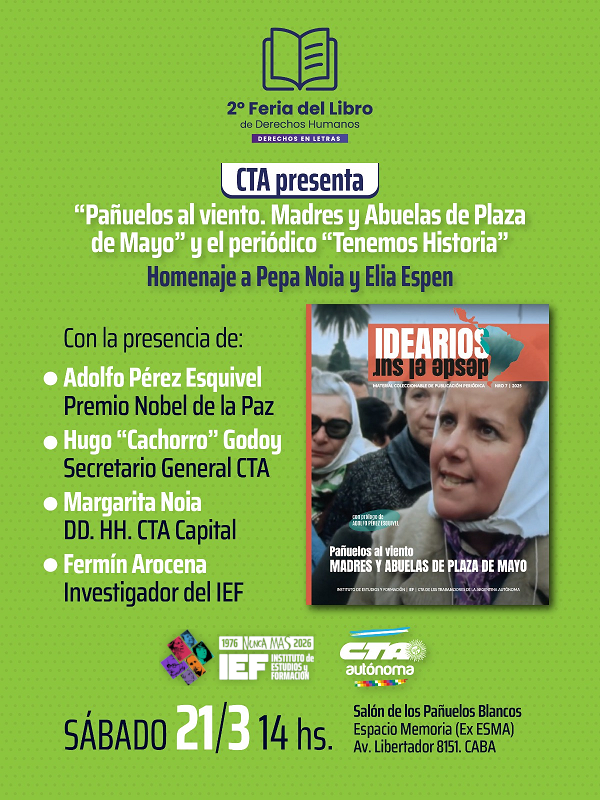 Sábado 21/3 Predio Ex ESMA | Pañuelos al Viento: Homenaje a Madres y Abuelas de Plaza de Mayo Salon de los Pañuelos Blancos Espacio Memoria (ex Esma) Av Libertador 8151. CABA El encuentro se realiza el sábado 21 de marzo, a las 14 horas en el Salón de los Pañuelos Blancos, Espacio Memoria (Ex ESMA), […]