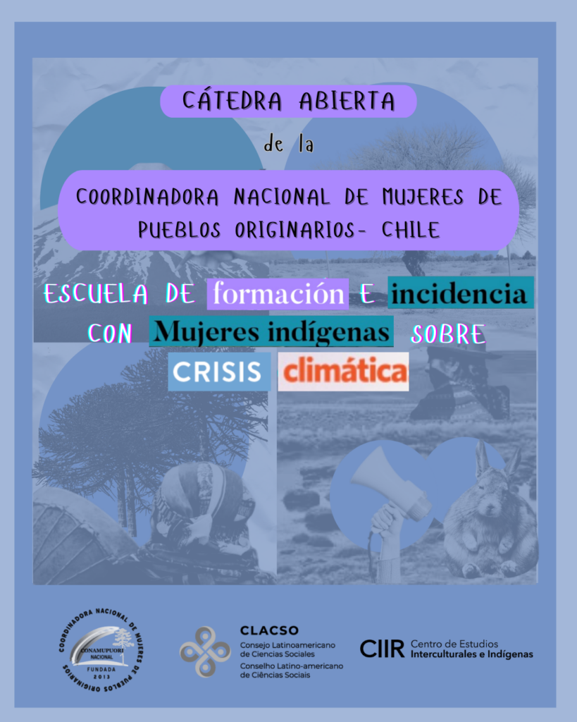 La cátedra abierta «Escuela de formación e incidencia con mujeres indígenas sobre crisis climática» tiene por objetivo fortalecer los liderazgos de mujeres indígenas de Latinoamérica/Abya Yala frente a la crisis climática. Desarrollada por la Coordinadora Nacional de Mujeres de Pueblos Originarios (CONAMUPUORI) con colaboración de Wechekeche ka itrofilmongen (WKI) y el Centro de Estudios Interculturales e Indígenas (CIIR), consta de cuatro sesiones formativas que abordan la crisis climática desde los conocimientos indígenas y las trayectorias organizativas de las mujeres indígenas.