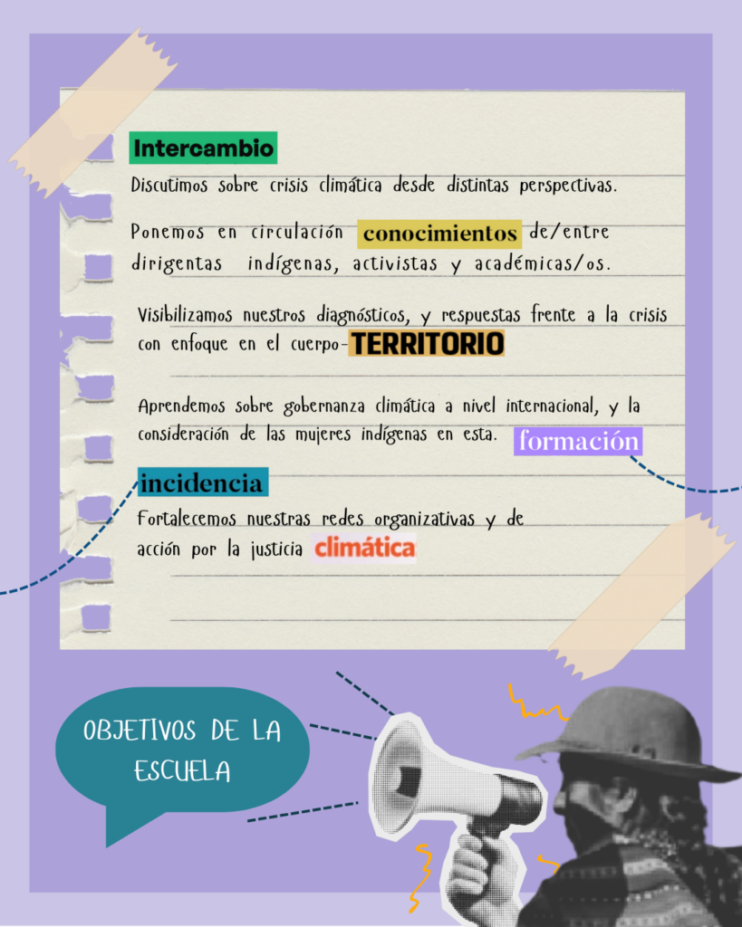 Esta cátedra busca fortalecer conocimientos en materia de gobernanza climática desde las propias trayectorias de las mujeres indígenas. Con el fin de visualizar posibles vías de acción para promover su presencia en espacios de toma de decisión.