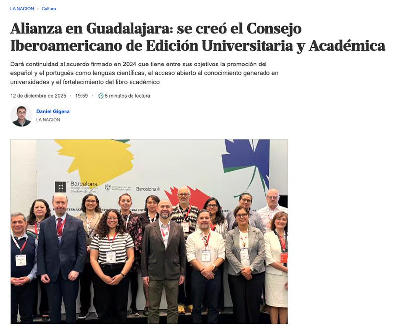 Alianza en Guadalajara: se creó el Consejo Iberoamericano de Edición Universitaria y Académica – Artículo en La Nación de Argentina – 12-12-2025
