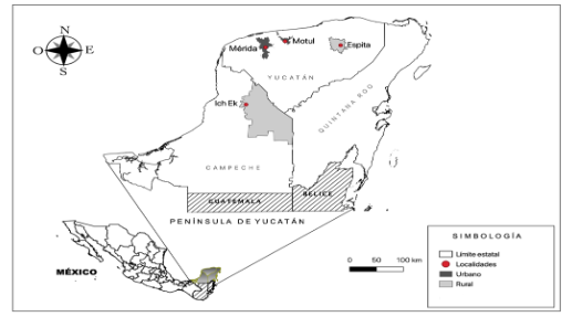 Figura 1. Localidades incorporadas al estudio en la Península de Yucatán