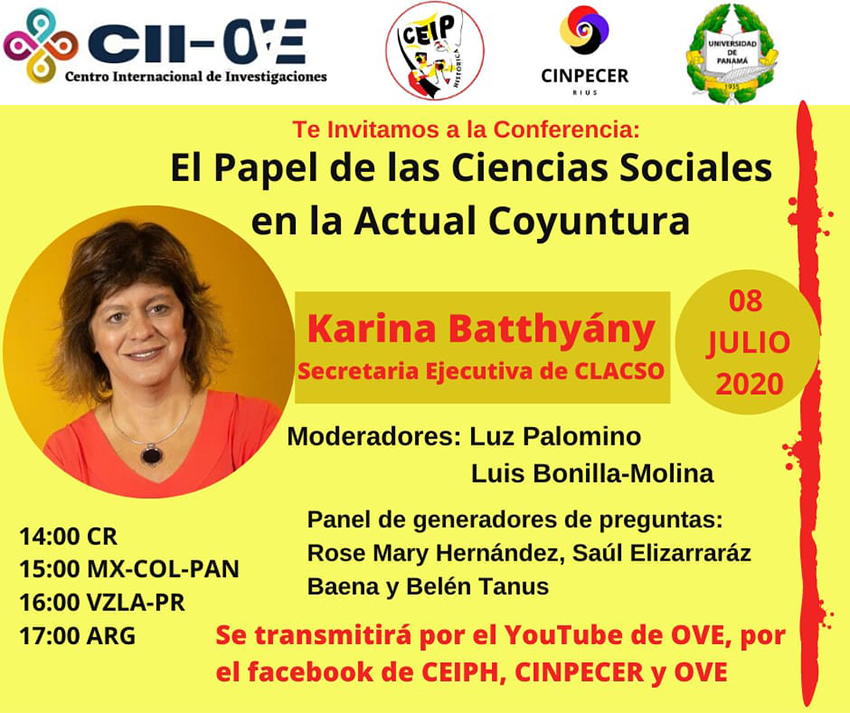 Karina Batthyány, Secretaria Ejecutiva de CLACSO, brindó el 8 de julio la conferencia: El papel de las Ciencias Sociales en la actual coyuntura.