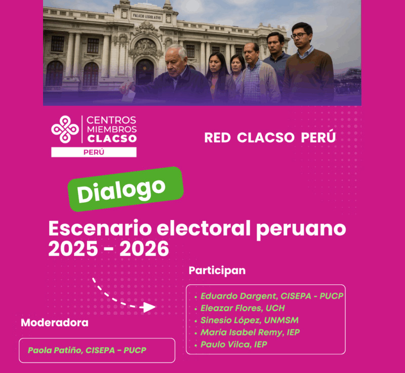 Los Centros Miembro CLACSO de Perú organizan, el jueves 27 de noviembre, el Diálogo: “Escenario electoral peruano 2025 – 2026” en el Instituto de Estudios Peruanos en la ciudad de Lima.