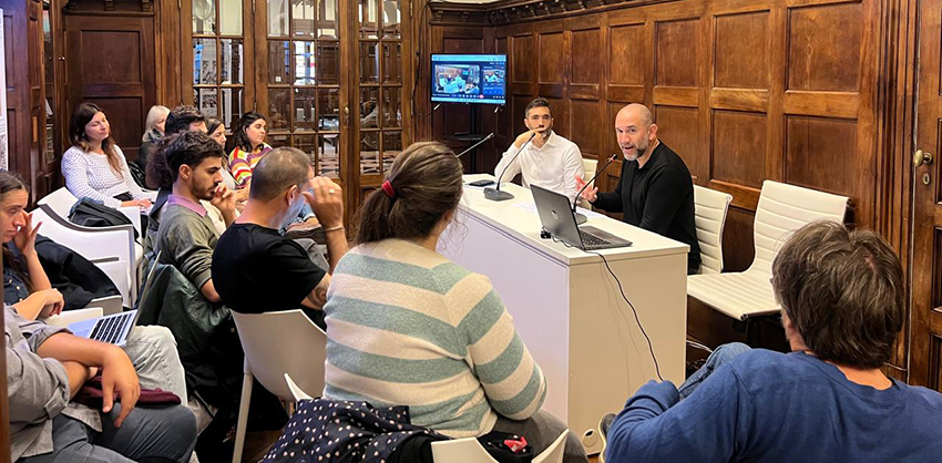 Participaron del encuentro en la sede de CLACSO: Pablo Vommaro, Director Ejecutivo del Consejo Latinoamericano de Ciencias Sociales, Pablo Gordon Daluz, Director del Monitor de Derechos en la Defensoría del Pueblo de CABA, y representantes de los equipos seleccionados, además de los y las tutores/as Hugo Ferpozzi, Sandra Wolanski, Cecilia Zapata, Nicolás Dzembrowski, Alejandra Oberti y María Cecilia Marengo.