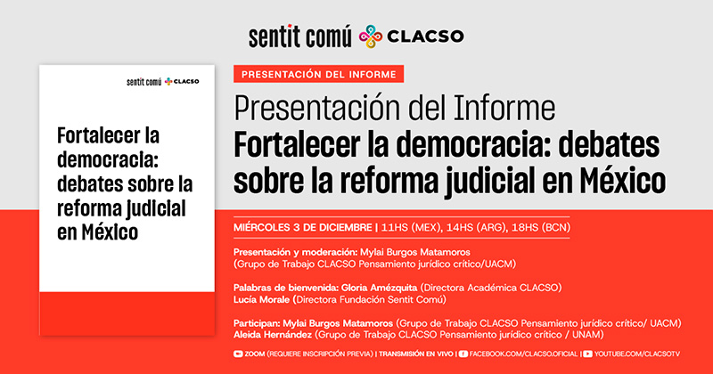 El miércoles 3 de diciembre, la Fundación Sentit Comú y CLACSO presentaron el Informe: “Fortalecer la democracia: debates sobre la reforma judicial en México”.