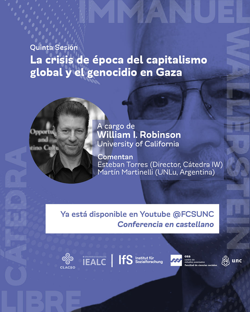 La Cátedra Immanuel Wallerstein presentó su quinta sesión, titulada “La crisis de época del capitalismo global y el genocidio en Gaza”, a cargo del sociólogo William I. Robinson (University of California, EE.UU.).