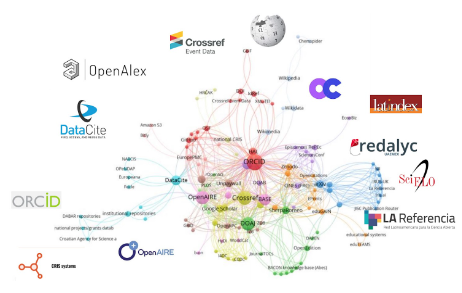 Figura 1 Ilustración de una posible federación de fuentes de información de investigación abierta, con algunas fuentes destacadas. Basado en Ficarra et al. (2020).
