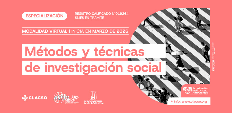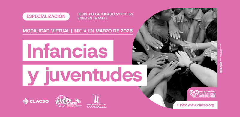 Las tres nuevas especializaciones “Métodos y Técnicas de Investigación Social”, “Infancias y Juventudes” y «Políticas del cuidado con perspectiva de género» son una propuesta académica conjunta de la Universidad de Manizales, el Consejo Latinoamericano de Ciencias Sociales (CLACSO) y el Centro Internacional de Educación y Desarrollo Humano (CINDE), a través de su Centro de Estudios Avanzados en Niñez y Juventud (CEANJ).