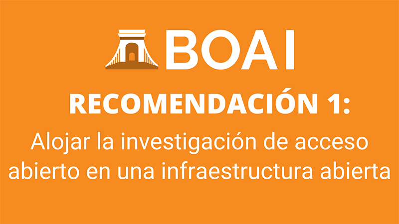 1. Alojar la investigación de acceso abierto en una infraestructura abierta. Alojar y publicar textos, datos, metadatos, códigos y otros resultados digitales de la investigación en infraestructuras abiertas y controladas por la comunidad. Utilizar una infraestructura que minimice el riesgo de futuras restricciones de acceso o control por parte de organizaciones comerciales. En los casos en que la infraestructura abierta aún no sea adecuada para las necesidades actuales, desarrollarla más.