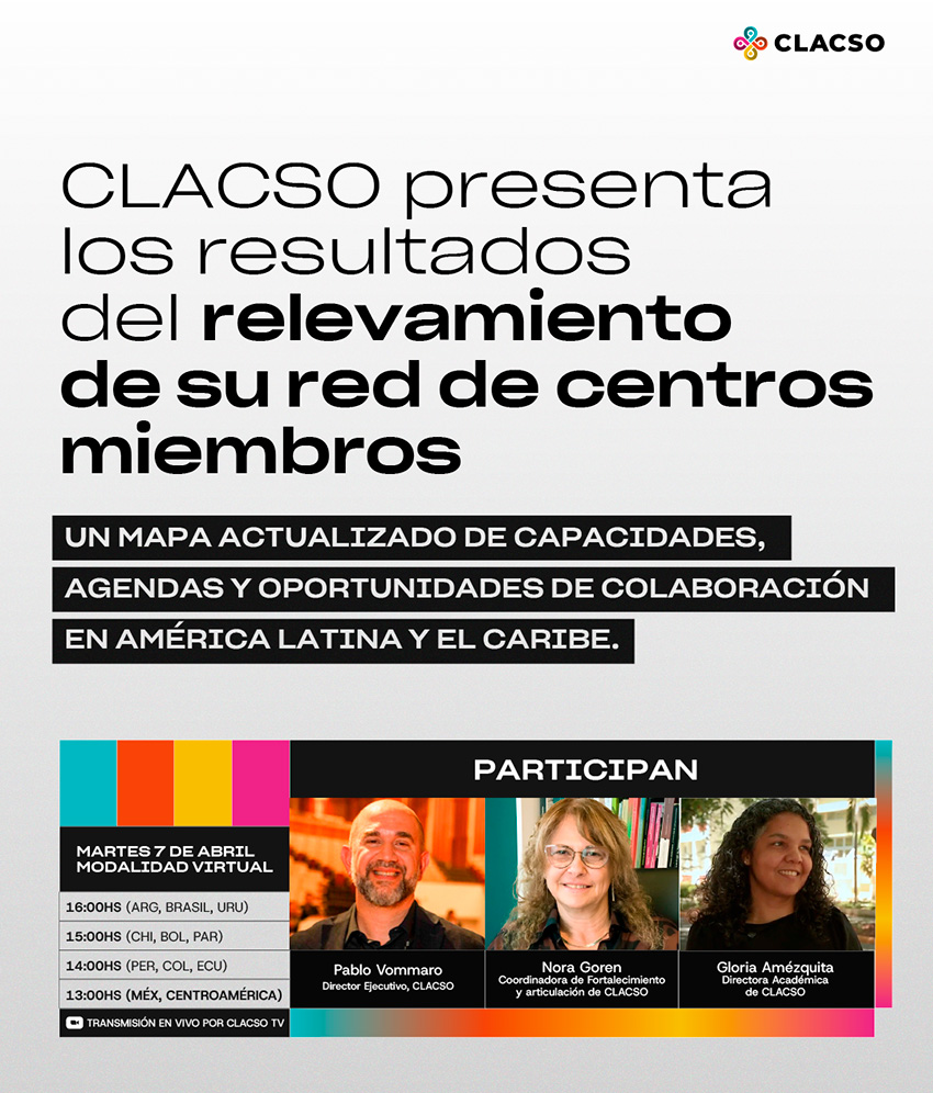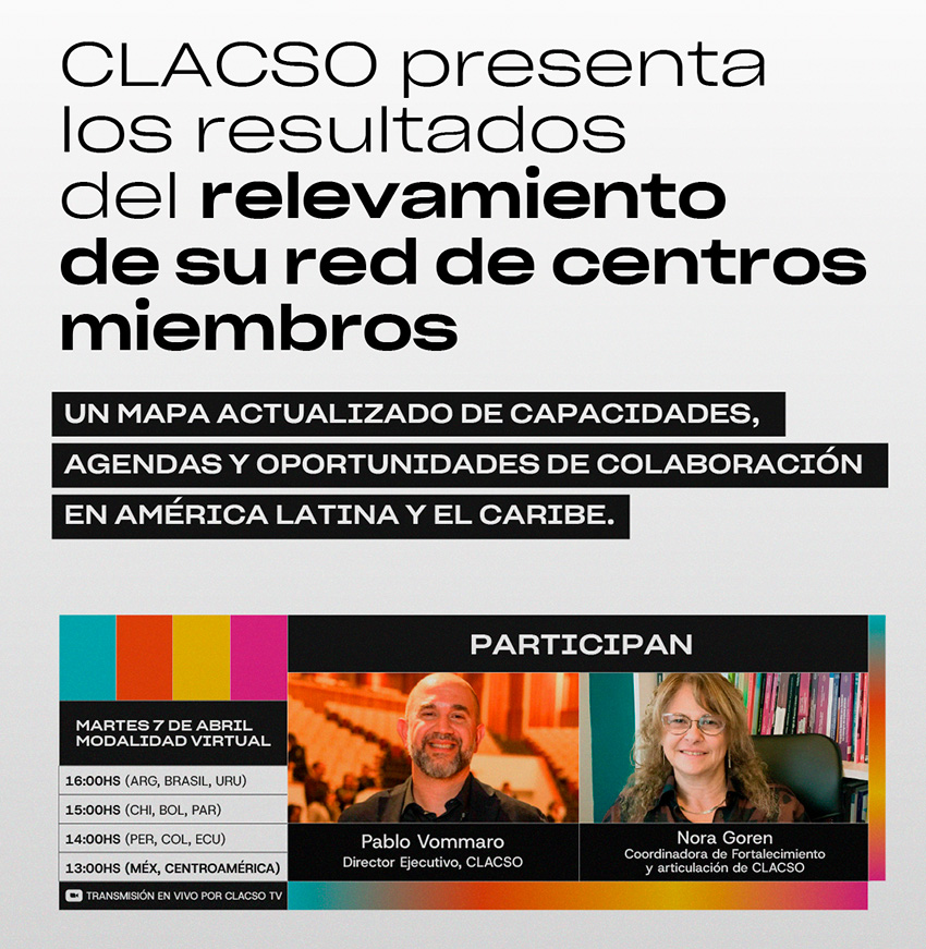 CLACSO presenta el martes 7 de abril los resultados del relevamiento de su red de Centros Miembros, con transmisión en vivo por CLACSO TV.