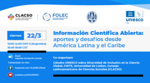 22 de marzo | Modalidad virtual12:00-14:00 GMT-3/ 16:00-18:00 CET A fin de avanzar en la evaluación responsable de la investigación y la ciencia abierta y promover…