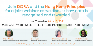 Fecha: 13 de Mayo de 2021 Horario: 11:00 AM Eastern Time (US and Canada) Organiza: DORA- The San Francisco Declaration on Research Assessment Inscripción: ow.ly/ThTX50EutoU