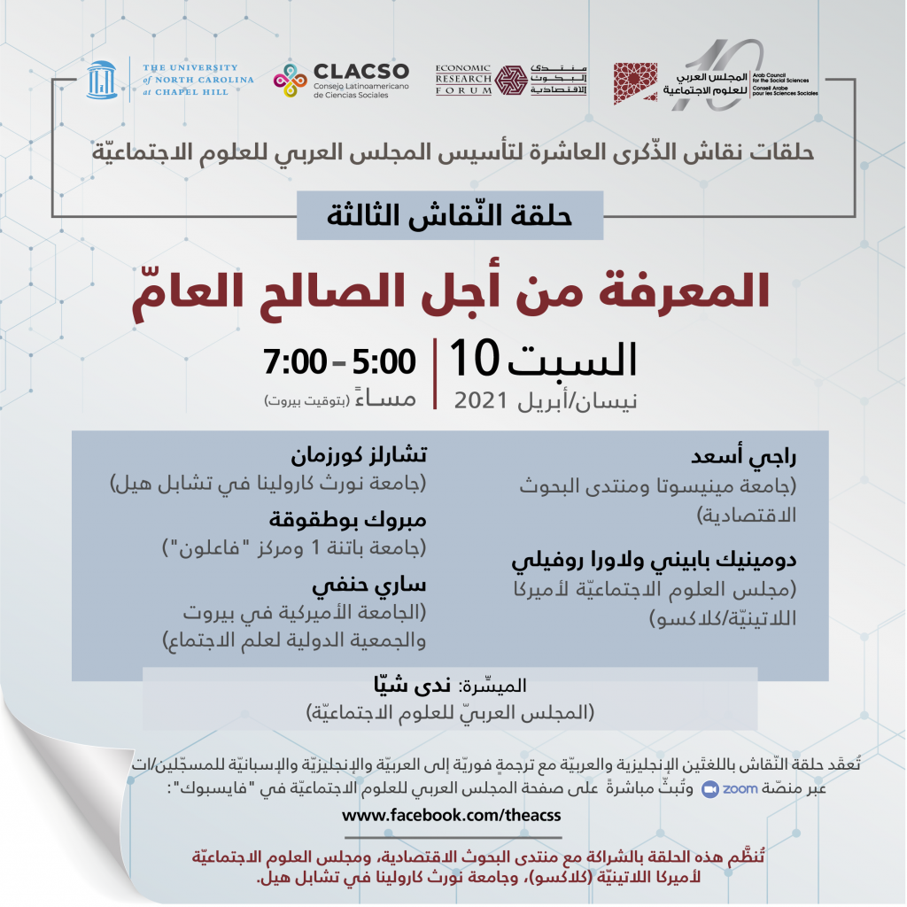 Webinarios por el 10º Aniversario del Consejo Árabe para las Ciencias Sociales – Webinario 3: El Conocimiento para el bien público